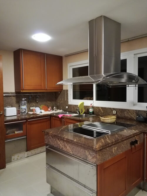 A casa de Rebecca la transformació és espectacular! L’estil de la cuina era de tonalitats més fosques tant en mobiliari com pintura de parets, etc. Rebecca volia canviar totalment el look de la cuina a colors clars, obrir espais enderrocant parets que separaven la cuina de l’menjador. S’ha realitzat una illa central amb zona de cocció composta de placa d’inducció i fregidora. Tot de la marca DE DIETRICH. D’aquesta manera la proprietaria pot cuinar de cara a familiars i amics en un ambient més obert.