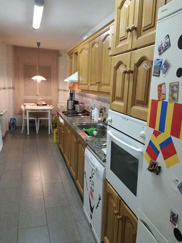Abans de la reforma la cuina a casa de Rosa i Miguel estava separada de la sala per envans. Els proprietaris volien obrir la cuina a la sala per modernitzar l’espai. El projecte requeria enderrocar els envans entre saló i cuina així com l’envà d’entrada a la sala. Tots dos envans separats per un pilar que no es podia enderrocar. Així que ens vam posar mans a l’obra per dissenyar un nou projecte seguint la nostra pròpia experiència i les idees de la interiorista.