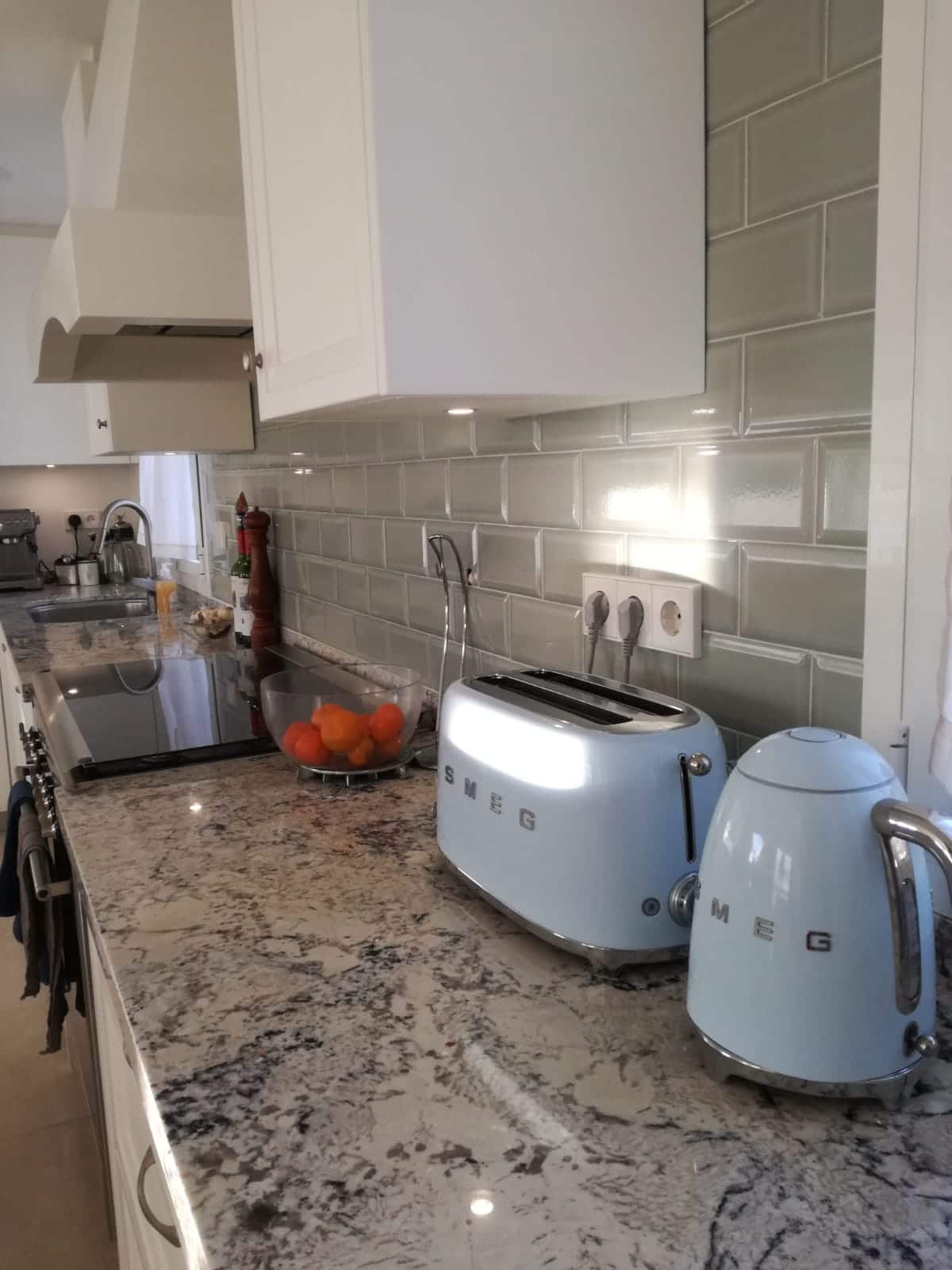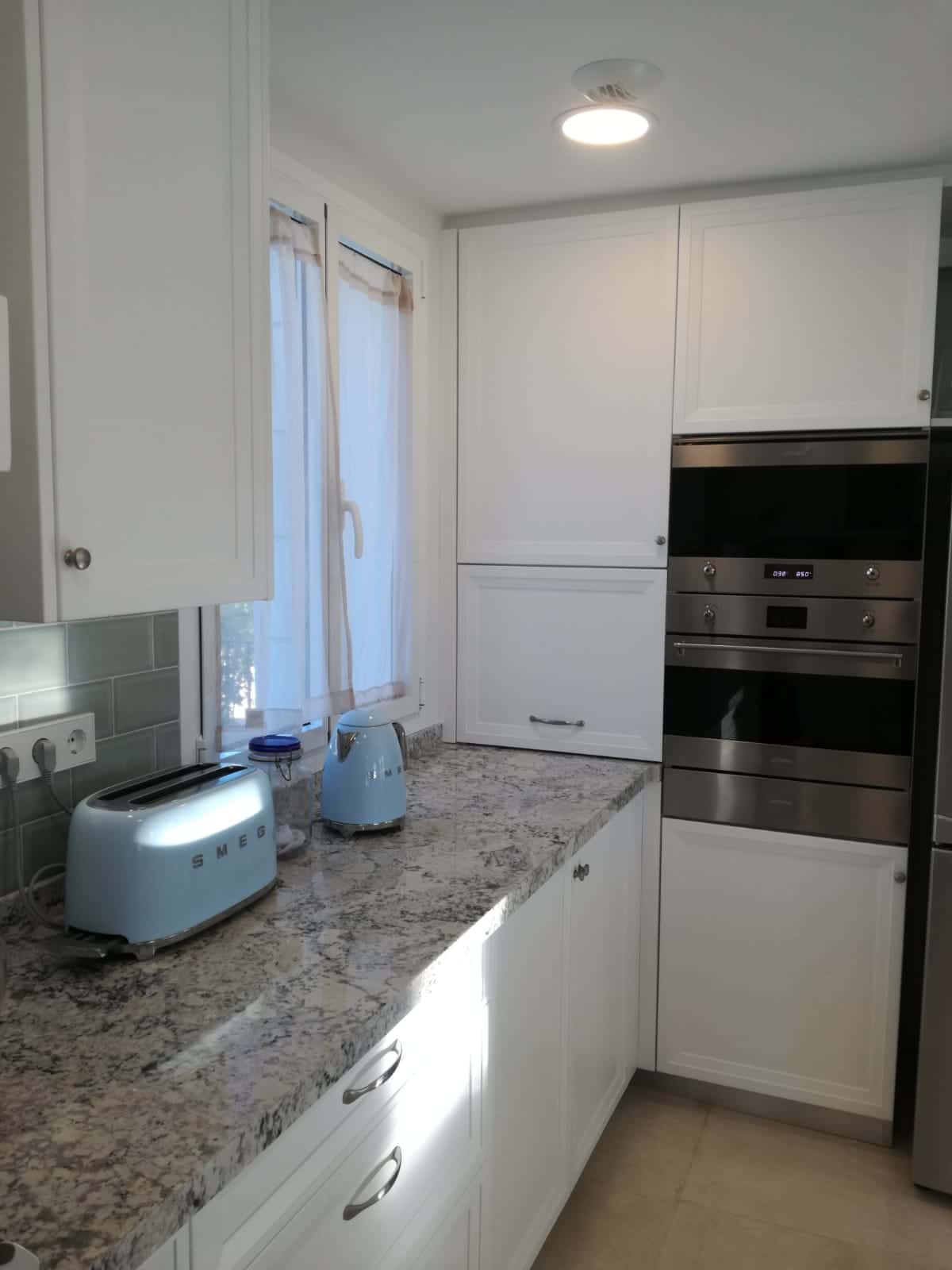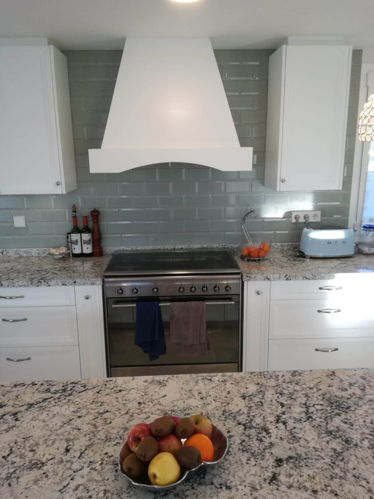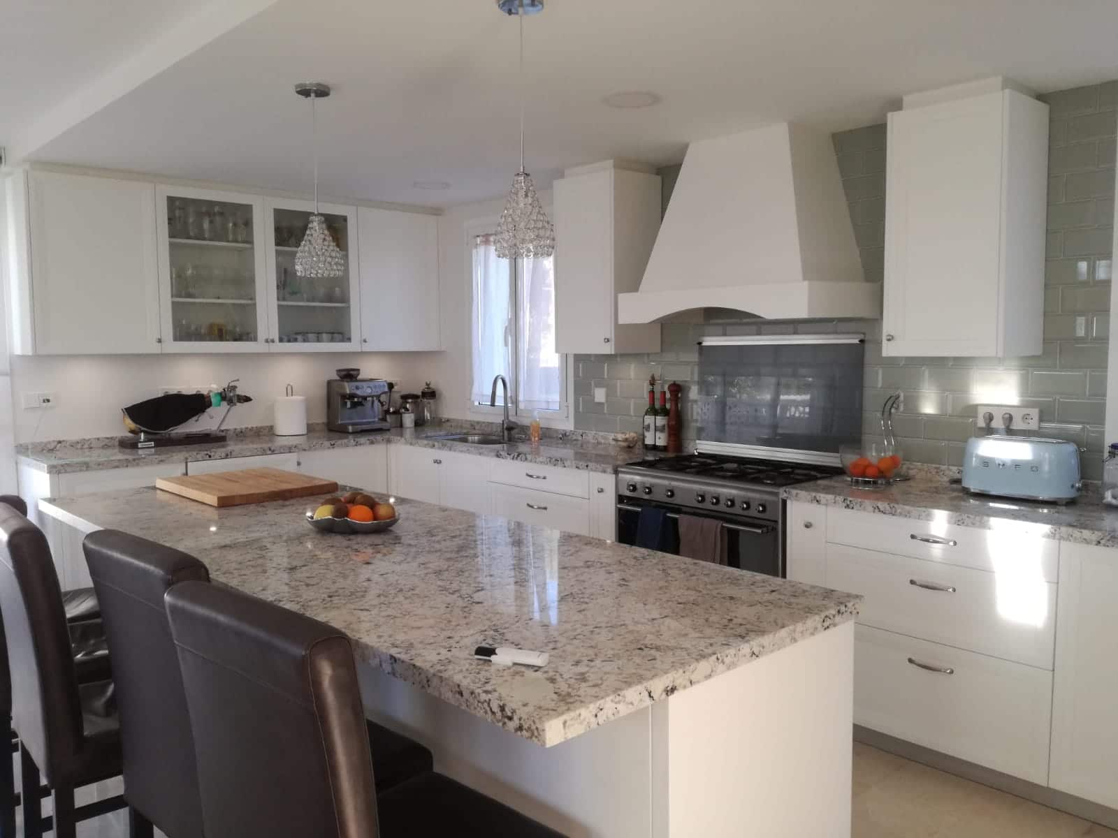 Els proprietaris originaris d’Estats Units que viuen a Castelldefels volien sentir com a casa. Van optar per un model més clàssic però amb punts de modernitat a el més pur estil americà. Una gran illa al centre de la cuina així com una campana en en centre de l’espai. Campana d’estructura de fusta pintada de el mateix color exacte que les portes de la cuina per integrar-se perfectament en l’espai. En el seu interior un motor d’alta potència per a l’aspiració dels fums de la cuina. </ P>