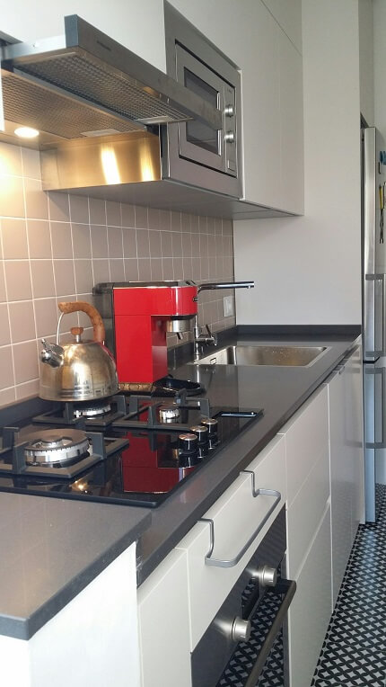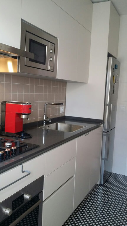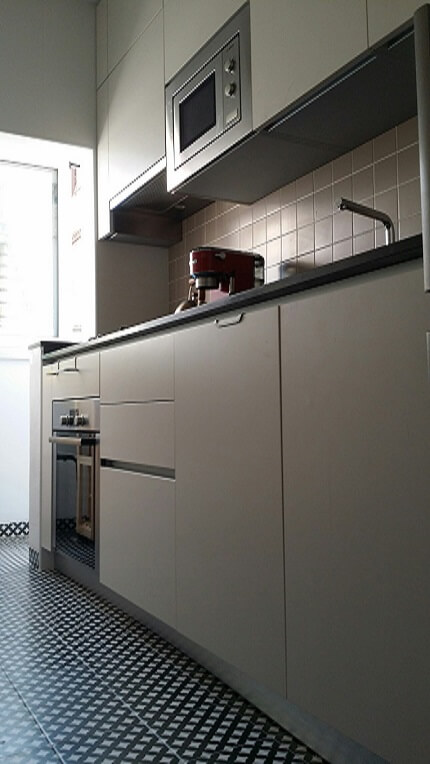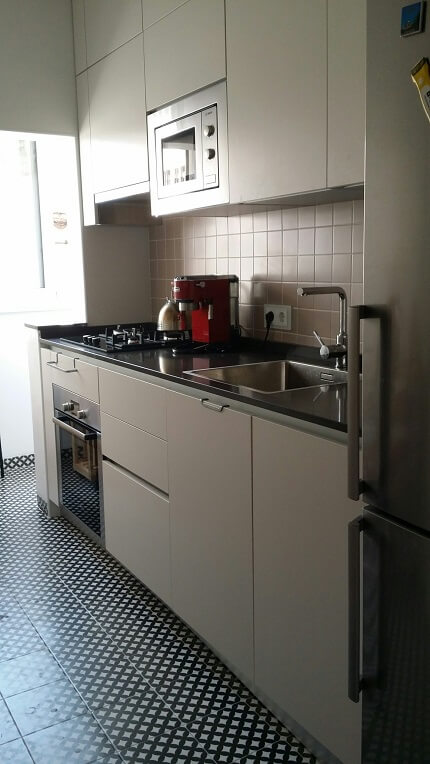 Kitchen project made in Mimi and Jaume’s house in their apartment in Barcelona. By reunifying the small laundry room with the kitchen and placing the same floor has managed to give the feeling of more spaciousness to the kitchen. the kitchen is very long and narrow, so the furniture of the brand #Inko without handles favors creating a more diaphanous line in the kitchen.