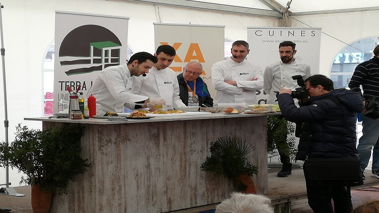 Glad to have been able to do our bit to make the Xatonada Popular del Vendrell 2017, #xatonadaelvendrell2017, come out great. The small vintage style kitchen was very suitable for the showcooking by “Terra i Taula” with the participation of chefs Jordi Guillem from Lo Mam restaurant, Josep Pascual from Ull de LLebre restaurant, David Vernet from Vell Papiol restaurant and Oriol Rosell from Ca l’Altet pastry shop. The tasting menu included Makis de Xató, Mil hojas de Xató, Xató hot dog, Orelleta de nata y naranja, delicious and original recipes with local products.
