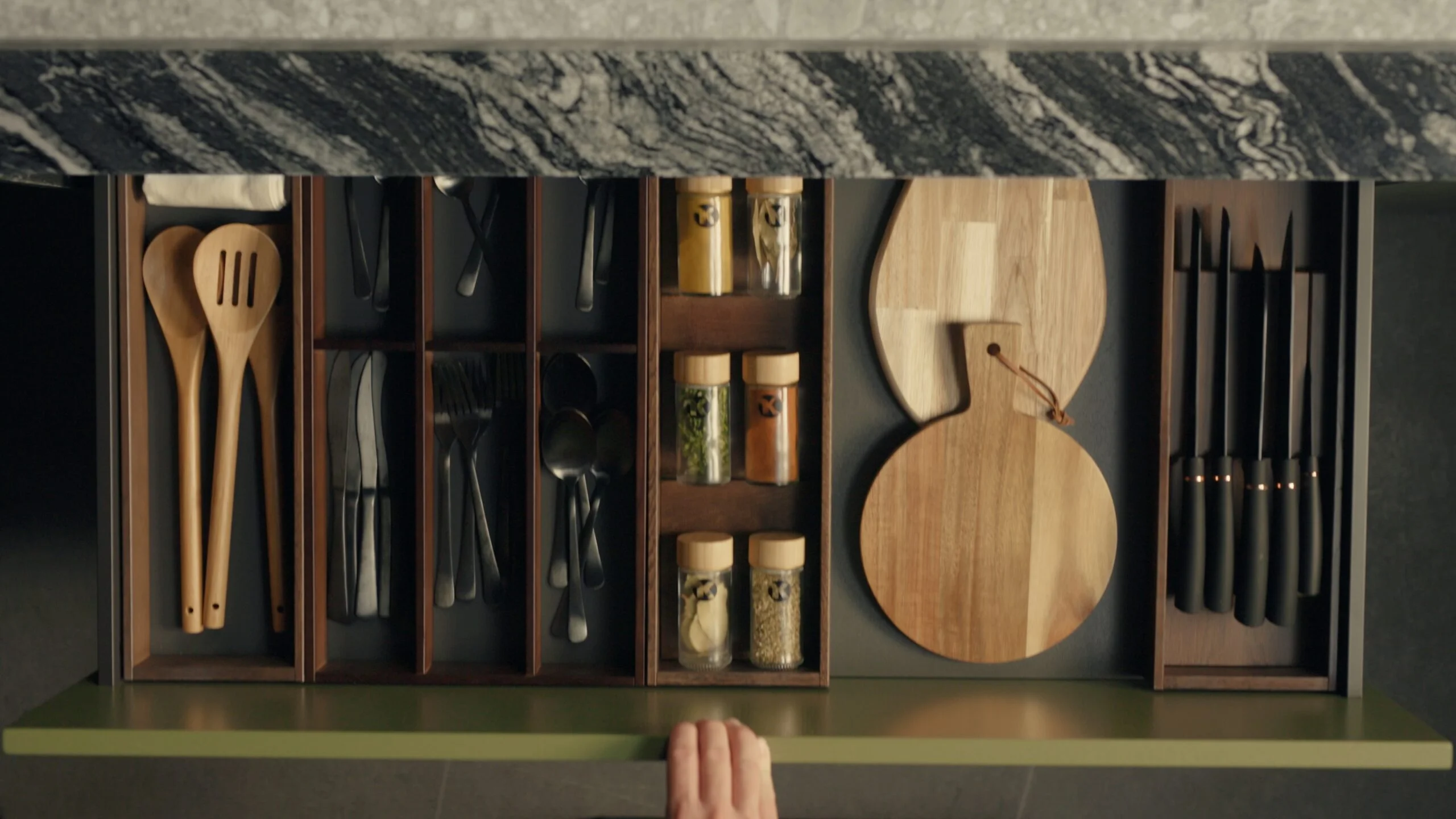 La calidad se percibe en cada detalle, también en el interior. En todos nuestros proyectos los cajones incorporan de serie el sistema Softclose, que asegura un cierre suave, silencioso y seguro durante toda la vida útil del mueble.