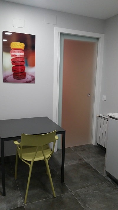 En esta reforma se ha hecho cambio de pavimento. Se ha quitado azulejo en paredes. Se optó por aplicar pintura especial satinada de fácil mantenimiento. Las zonas de cocina y fregadero se han revestido de DEKTON COLOR NALYA con vetas tipo amarmolado que resiste calor y rayado a la perfección.