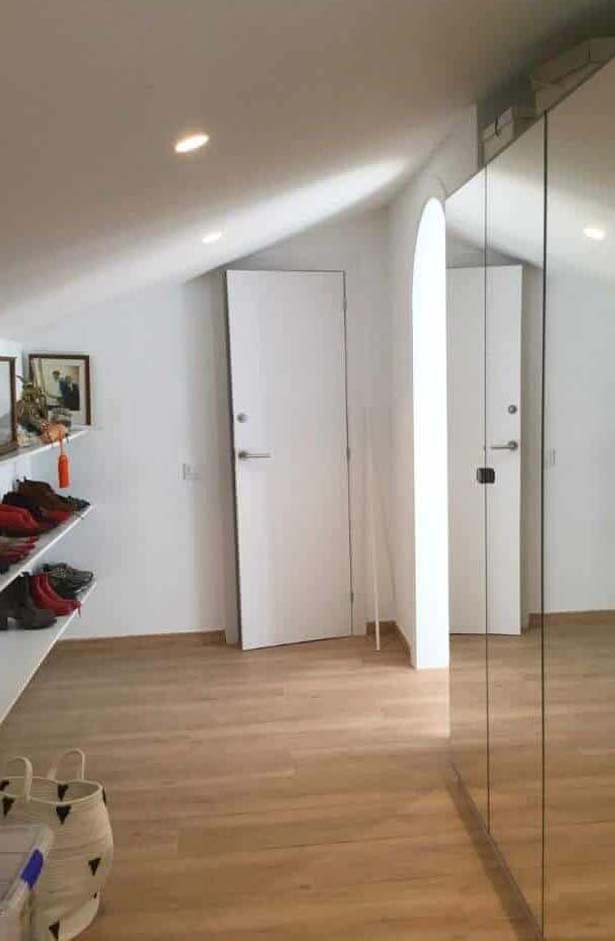 Se ha cerrado el hueco de la escalera convirtiéndolo en un armario con puerta para aprovechar mejor el espacio.