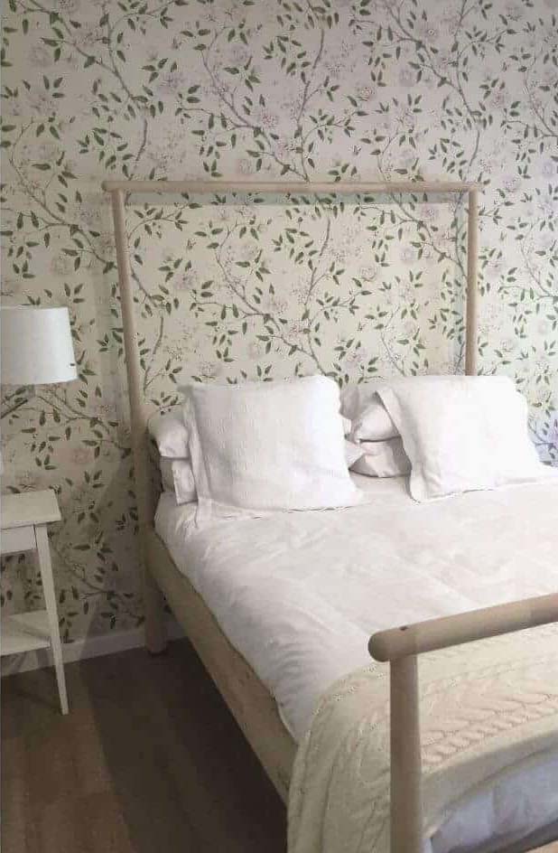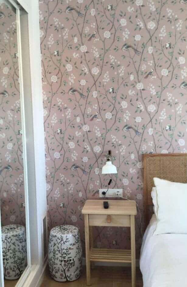 En Las habitaciones se ha colocado papel pintado en las paredes en vez de pintarlas.