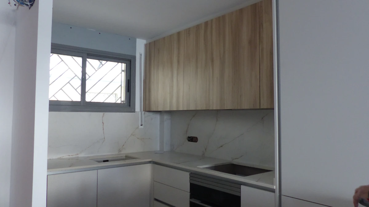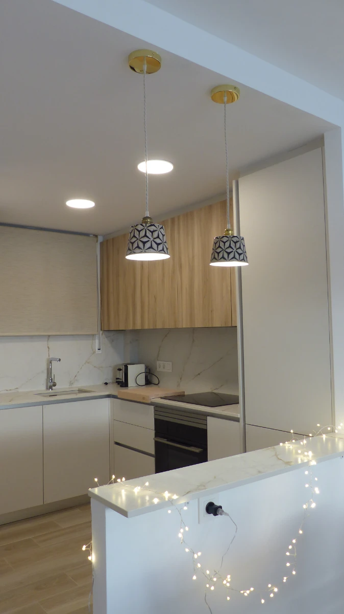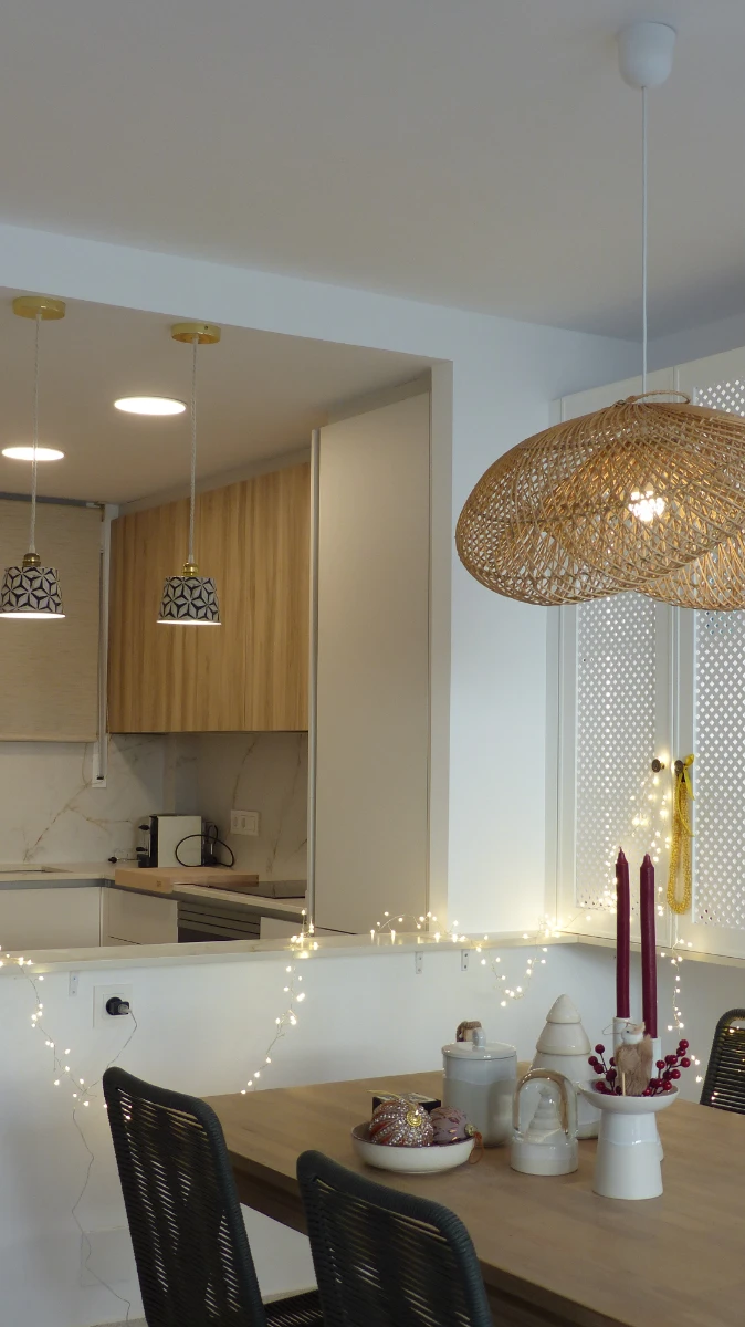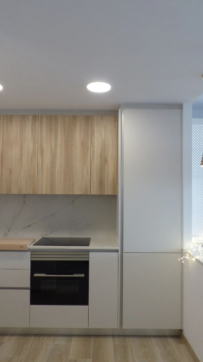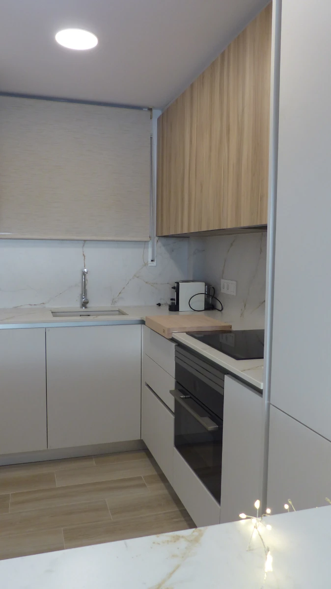 El proyecto puso especial énfasis en la apertura del salón, logrando un espacio más amplio, luminoso y conectado con el resto de la vivienda. La cocina, integrada y diseñada para el día a día, combina funcionalidad y estética, incorporando mobiliario del fabricante INKO, sinónimo de calidad y diseño contemporáneo.