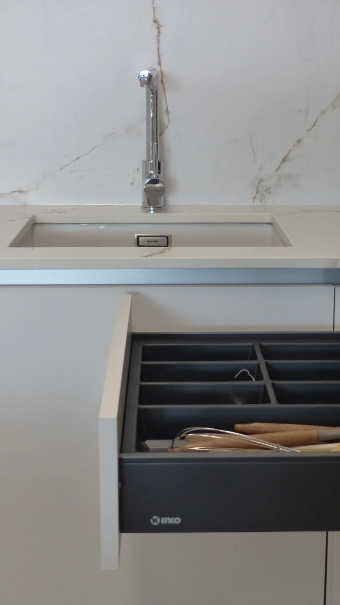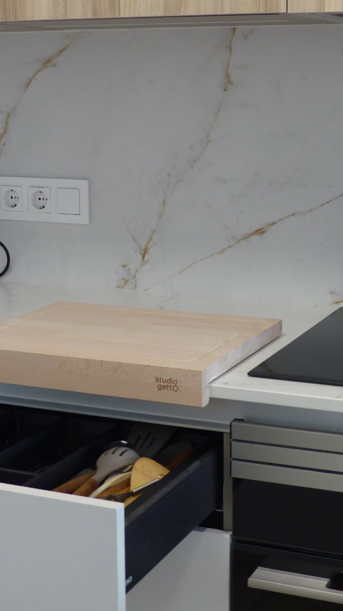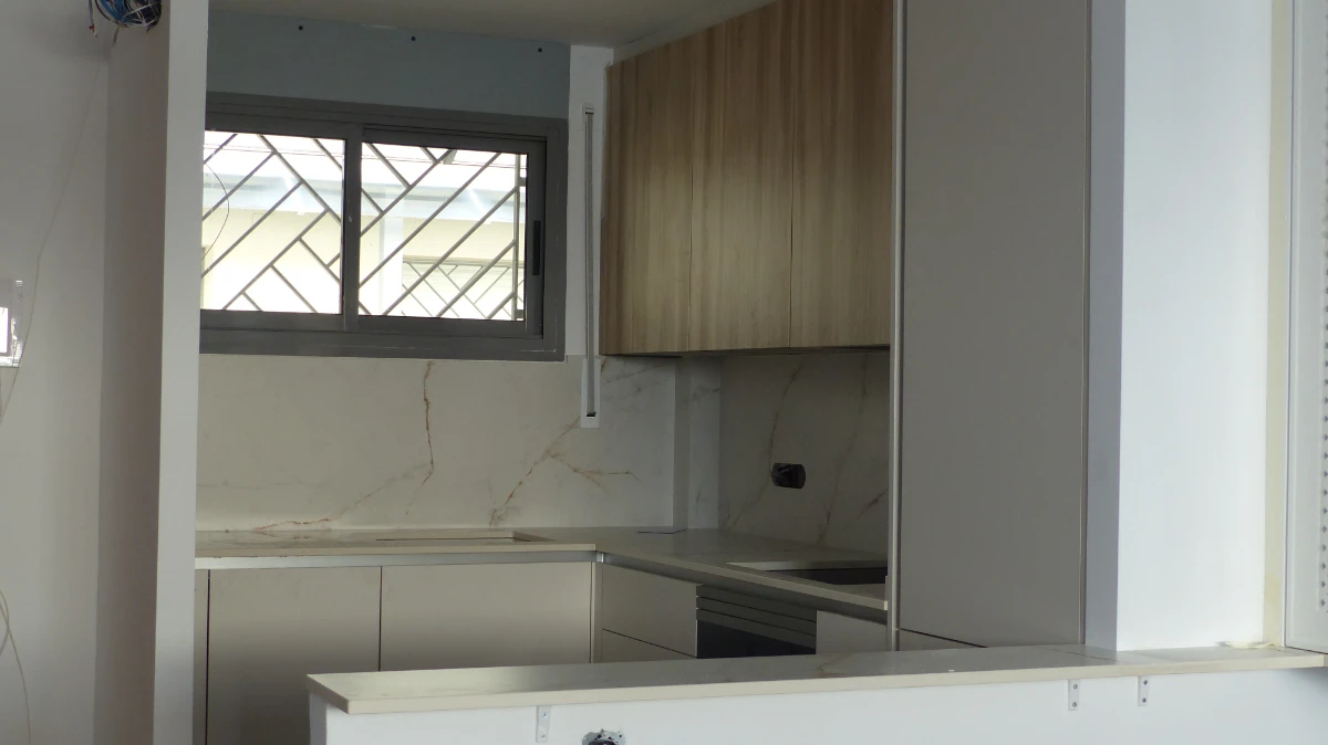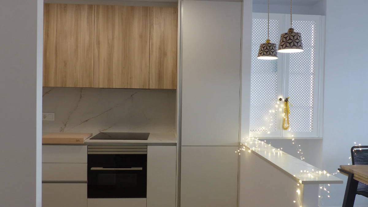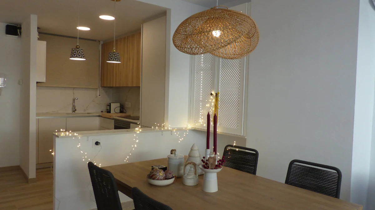 El proyecto puso especial énfasis en la apertura del salón, logrando un espacio más amplio, luminoso y conectado con el resto de la vivienda. La cocina, integrada y diseñada para el día a día, combina funcionalidad y estética, incorporando mobiliario del fabricante INKO, sinónimo de calidad y diseño contemporáneo.