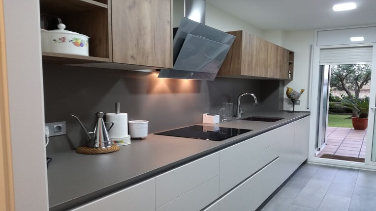 La encimera es de DEKTON color GALEMA. El fregadero es bajo encimera.