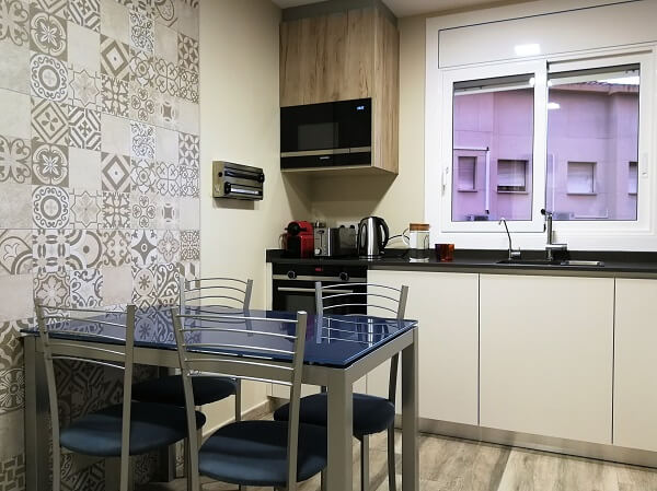 Se ha cambiado azulejos de paredes y suelo, la ventana de aluminio nueva, colocado nuevo mobiliario de cocina de la marca INKO en modelo gourmet fumet combinado Habitat tostado. El modelo es sin tirador, con gola de aluminio.