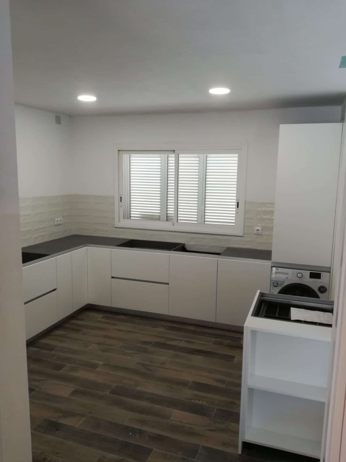 Los azulejos de la cocina son blancos imitación ladrillo. La proprietaria Maite tenía muy claro lo que quería en cuanto a color y estilos. Algo ligero y funcional. No le importaba tanto la moda como la comodidad y que la distribución se ajustará a su modo de vida.